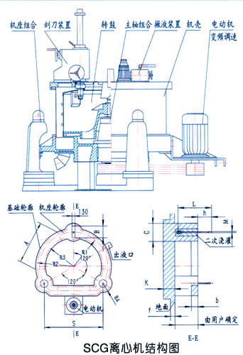 | SCG型离心机是一种三足式、刮刀下部卸料、间歇操作的沉降设备。转鼓无孔,在离心力场作用下,较重的固相物沉积在转鼓壁形成沉渣层,轻相物形内层液环,澄清后的内层液相物可翻过拦液板溢流出转鼓,也可用撇液管在运转中引出转鼓,固相物则降速后用刮料器刮落从离心机下部卸出。适合分离含固相物颗粒细、粘度大、浓度低、过滤介质再生困难、固相物比重大于液相物的悬浮液。广泛用于化工、轻工、食品、制药、冶金等行业。