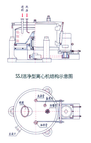 SSJ型离心机是为符合医药行业"GMP"规范与食品卫生要求设计制作的洁净型离心机.凡与物料接触的设备表面光洁,平整,易清洗,耐腐蚀,不与药物发生化学反应或吸附,离心机转鼓,底盘衬包与机壳内外表面均经抛光处理,全开大翻盖,便于出料及维护.盖上装有进料管,洗涤管,防爆灯,广角视镜等,可现场监控整个进料,分离,洗涤过程,所有紧固件均为不锈钢.